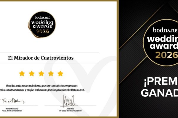 NOTA DE PRENSAMirador de Cuatrovientos reconocida como una de las mejores empresas debodas de España y galardonada con un Wedding Award 2026 de Bodas.net.Madrid, 21 de enero 2026 Bodas.net, plataforma referente en el sector nupcial perteneciente a The Knot Worldwide...